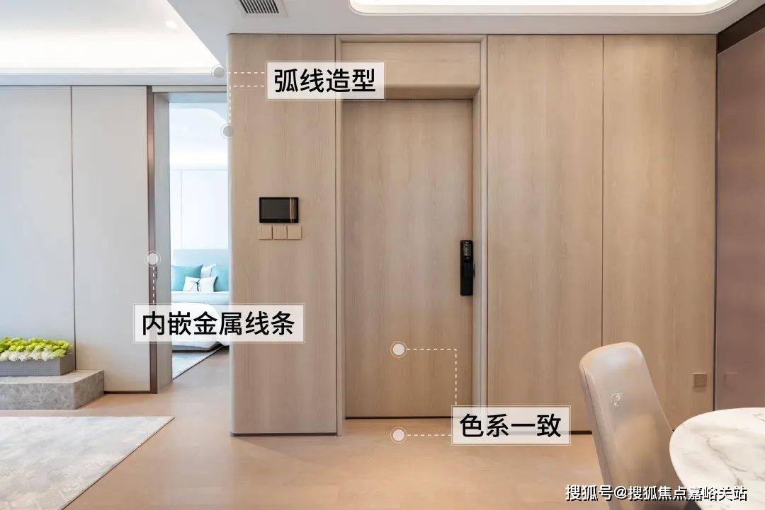 这一点实在难能可贵,毕竟在大多数样板间里,电梯厅和室内空间往往由于采购商与施工方的不同,导致风格、色系等方面存在割裂感。