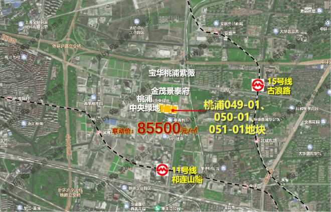 2023年8月,上海二批次土拍,宝华&东苑以总价328800万元成交普陀区桃浦科技智慧城(W06-1401单元)049-01、050-01、051-01地块,溢价率4.05%,楼板价43655元/㎡,房地联动价85500元/㎡。